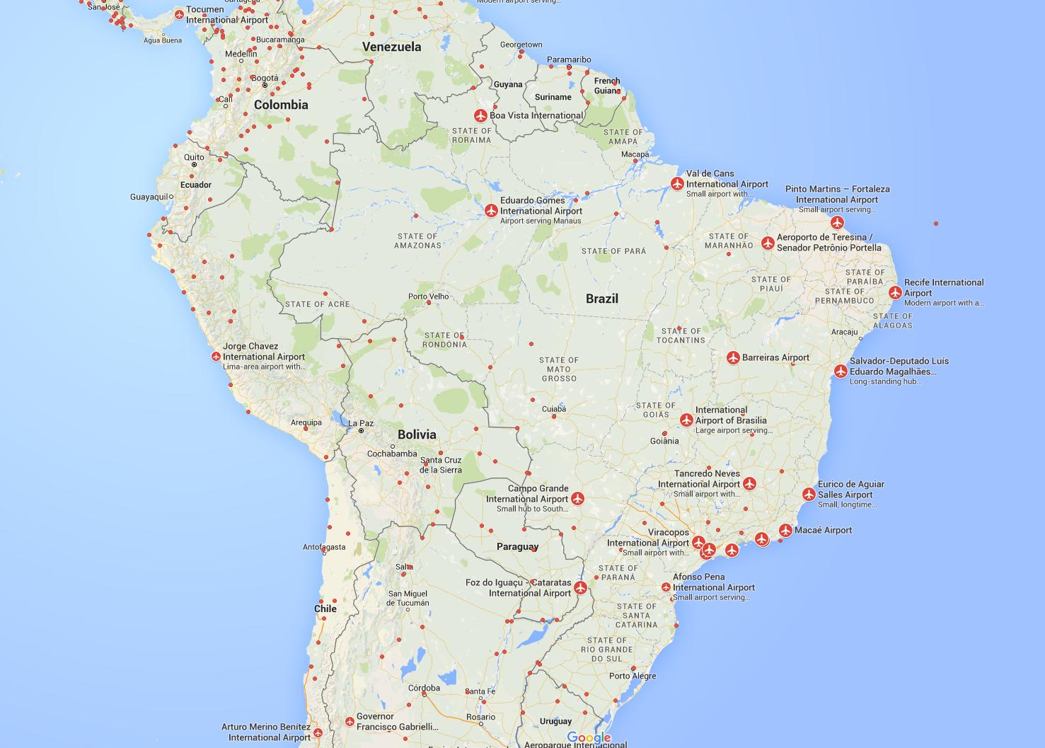 Die meisten internationalen Flüge müssen zum Guarulhos International Airport in São Paulo oder zum Galeão International Airport in Rio de Janeiro gehen, wie es in der Karte der internationalen Flughäfen Brasiliens erwähnt wird. Belo Horizonte ist der wichtigste internationale Flughafen außerhalb von Rio de Janeiro und São Paulo. Einige wenige gehen nach Brasília, Recife, Natal, und erst kürzlich hat Fortaleza internationale Flüge angenommen. Mit der südamerikanischen Integration ist zu erwarten, dass sich weitere Flughäfen für internationale Flüge öffnen werden.